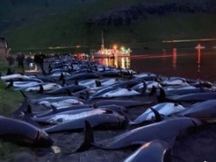 تصاویر دلخراش صید بیش از هزار و 400 دلفین در جزایر فارو