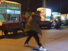 حرکات وو شوی یک دستفروش در یک شب زمستانی